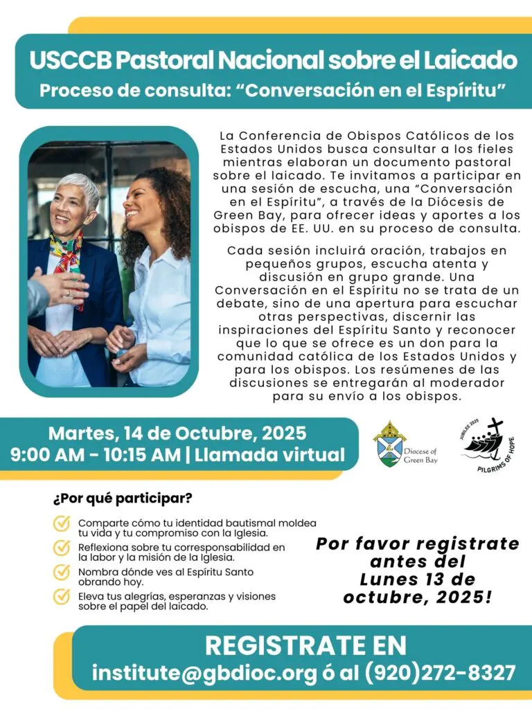 ¡Imagínese cómo se verían las parroquias en la Diócesis de Green Bay si cada parroquia tuviera un grupo de personal y feligreses, formados como discípulos misioneros, equipados para acompañar a otras personas y servir como líderes en cualquier apostolado al que sean llamados!