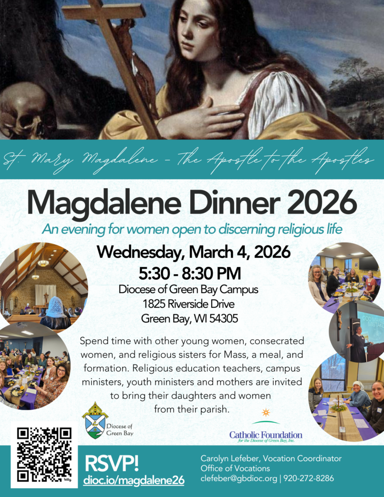 For high school & college-age women (14+) Join us for Mass with Bishop, a meal, and formation with other discerners, consecrated virgins and religious sisters.