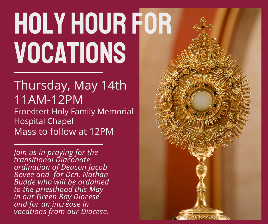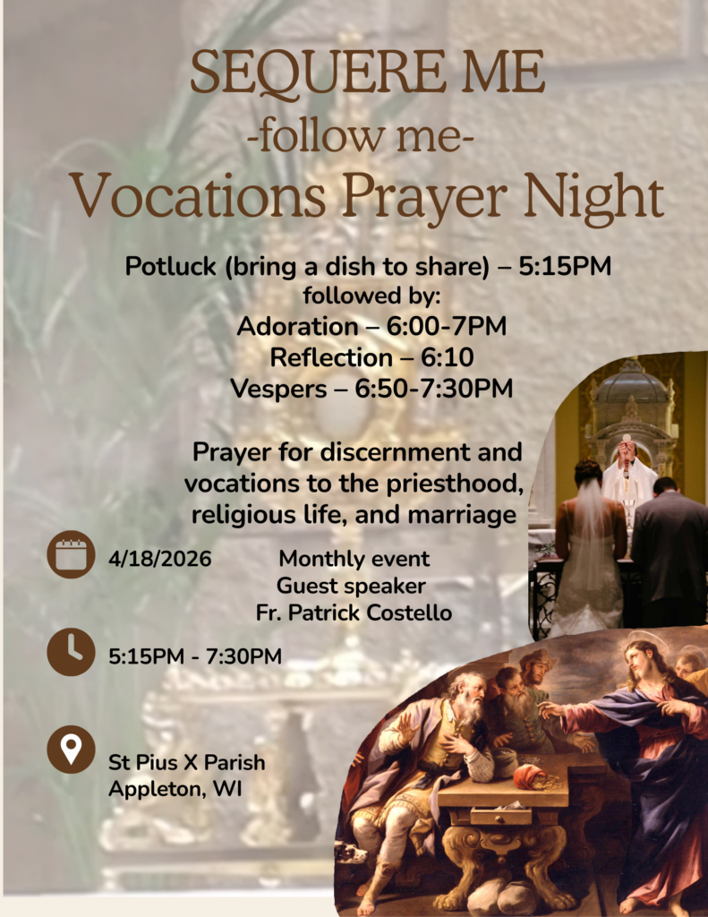 Come and pray for those discerning their vocation, or for yourself to spend time with the Lord as you discern your own vocation! Join in the potluck and bring something to share.